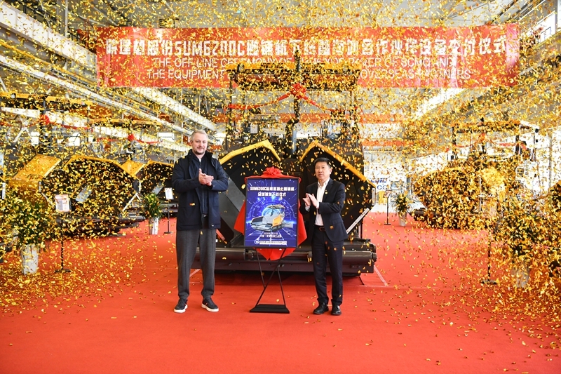 陜建機股份舉辦SUM6200C攤鋪機下線暨海外合作伙伴設備交付儀式