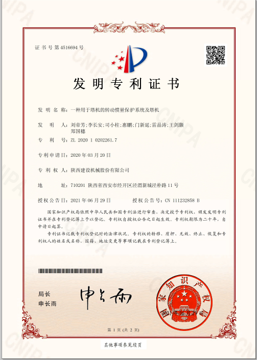 近日,陜建機(jī)股份公司《一種用于塔機(jī)的轉(zhuǎn)動(dòng)慣量保護(hù)系統(tǒng)及塔機(jī)》獲國(guó)家知識(shí)產(chǎn)權(quán)局頒發(fā)的發(fā)明專(zhuān)利證書(shū)。作為基建施工過(guò)程中關(guān)鍵的設(shè)備,塔式起重機(jī)的工況直接影響著建筑產(chǎn)品的安全性與可靠性?,F(xiàn)有塔機(jī)在回轉(zhuǎn)控制中,大多數(shù)采用的技術(shù)是通過(guò)在回轉(zhuǎn)過(guò)程中增加渦流系統(tǒng)來(lái)提高回轉(zhuǎn)運(yùn)動(dòng)過(guò)程穩(wěn)定性,以及保護(hù)大臂的作用。這種控制方式無(wú)法反饋,一旦回轉(zhuǎn)機(jī)構(gòu)出現(xiàn)問(wèn)題,則會(huì)導(dǎo)致塔機(jī)在回轉(zhuǎn)過(guò)程中大臂出現(xiàn)較大的頓挫、反彈、甚至對(duì)大臂造成永久性破壞。針對(duì)現(xiàn)有技術(shù)中的技術(shù)問(wèn)題,本發(fā)明提供了一種用于塔機(jī)的轉(zhuǎn)動(dòng)慣量保護(hù)系統(tǒng)及塔機(jī),能夠有效避免...